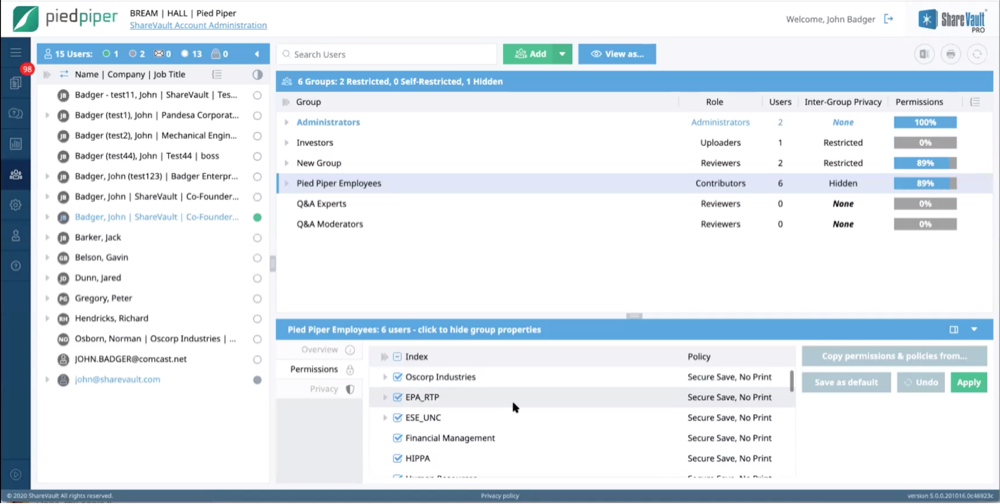 - Group-based permissions that match bidder and advisor structures.
